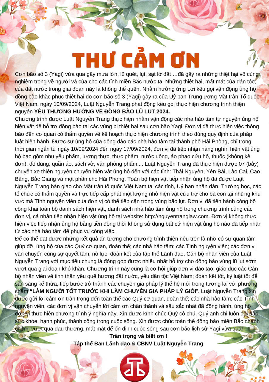 Luật Trường Nguyên là đơn vị tiên phong thực hiện hoạt động cung cấp các gói giải pháp TRỌN VẸN trong lĩnh vực pháp lý cho Quý khách bao gồm: Luật sư tư vấn pháp luật và tranh tụng; tư vấn sử dụng dịch vụ Công chứng các giao dịch về đất đai – tài sản và đăng ký giao dịch bảo đảm; tư vấn sử dụng dịch vụ thiết lập Vi bằng ghi nhận chứng cứ, sự kiện qua hoạt động Thừa phát lại; tư vấn sử dụng dịch vụ Thẩm định giá tài sản và bán đấu giá tài sản khi khách hàng có nhu cầu đồng thời cung cấp các dịch vụ pháp lý khác theo quy định của pháp luật.