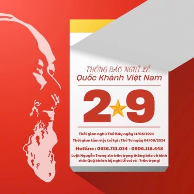 THÔNG BÁO NGHỈ LỄ QUỐC KHÁNH 2 – 9 Luật Nguyễn Trang xin trân trọng [...]