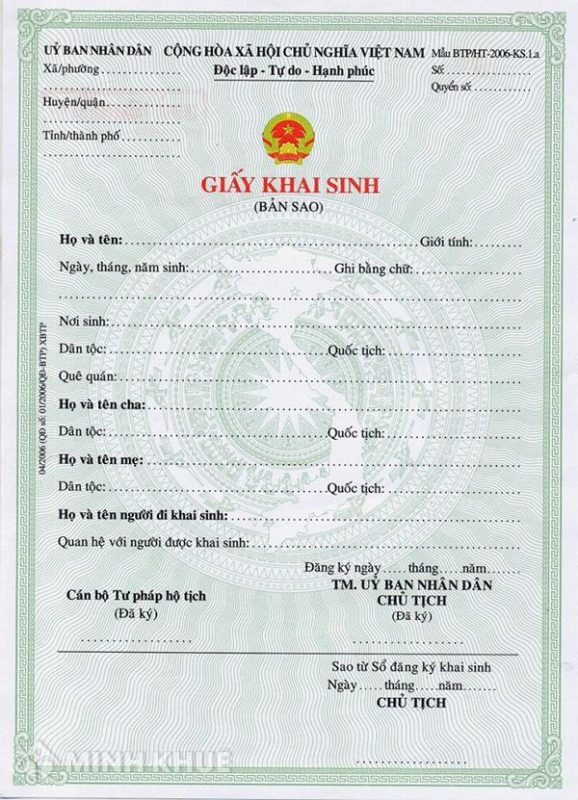– Bản sao Giấy khai sinh do cơ quan có thẩm quyền của Việt Nam cấp hợp lệ.